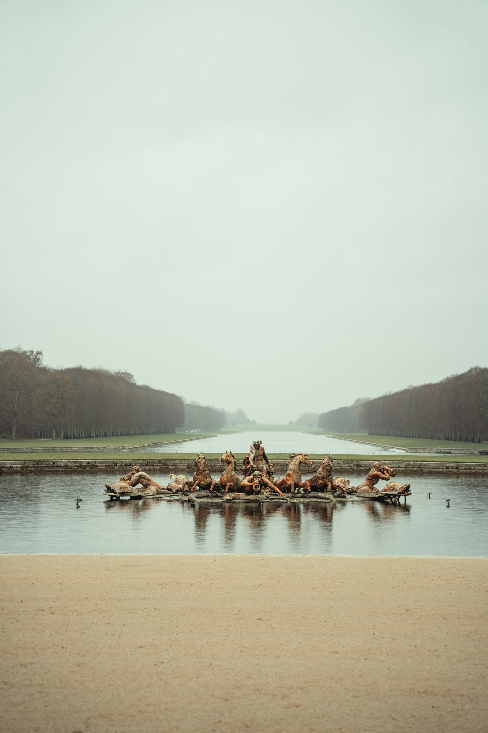 At Versailles, politics became visible without proclamations. Power was inscribed in space. The great east-west axis, the nearly infinite extension of perspective, the sequence of basins, avenues and openings, the placing of sculpture, the very logic of movement through the grounds: all compose a scenography meant to fix a center. Not an abstract center, nor a vague idea of the state, but a physical, almost organic center: the king.